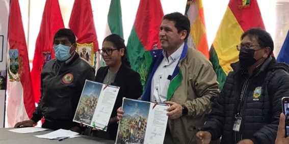 La alcaldesa Eva Copa y el director general ejecutivo del FNDR, Edson Valda, suscribieron ayer el contrato de financiamiento que se hará efectivo con recursos del Fideicomiso de Apoyo a la Reactivación de la Inversión Pública (FARIP).