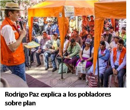 El alcalde Rodrigo Paz Pereira, en acto realizado en la plaza principal, anunció el “Plan de la Gente”